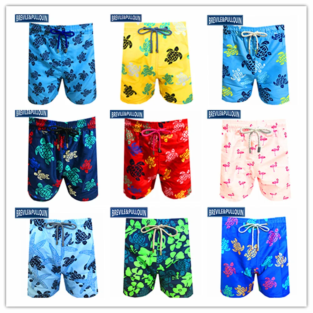 lower price 2020 Big Brand Brevile pullquin Beach Board Shorts Men Turtles Swimwear Flamingo Sea Star Swimsuit